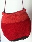 As usual, I was making it up as I went along, so the pattern is going to need some checking for repeatability before I share it, but if you feel inspired and want to go your own way, I suggest casting on about 36 stitches on circular needles, increasing over a number of rows, knitting straight for the mid-section, then decreasing until you feel comfortable turning bag inside out, dividing the stitches in half, and casting off using the circular needle as two straights with a third to knit/cast off both halves together knitwise. Then add a strap.