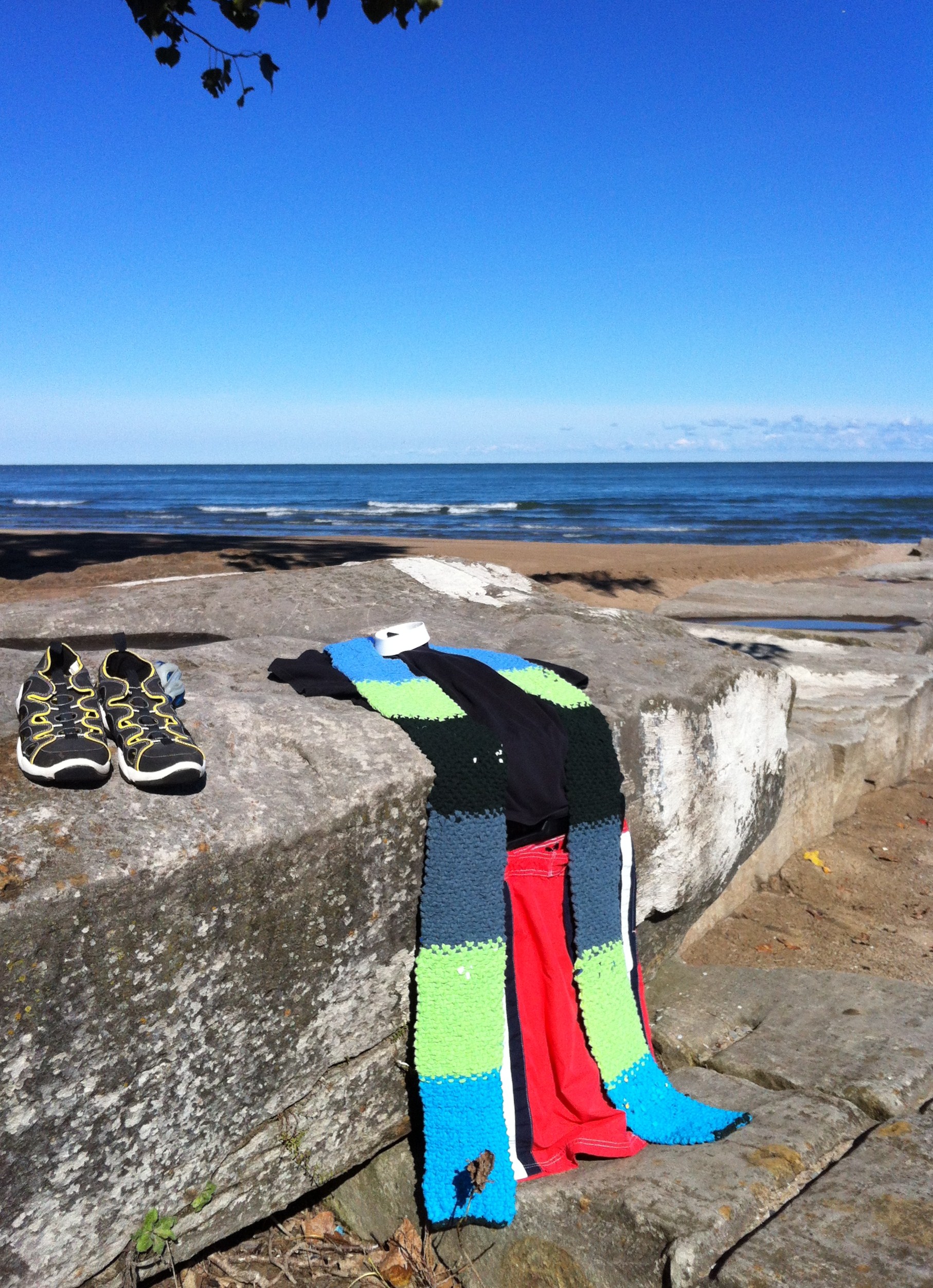 I know, summer is technically over, and we’re into autumn around here, but I promised finished photos of the t-shirt stole, and it’s a sunny day on the north coast, so …